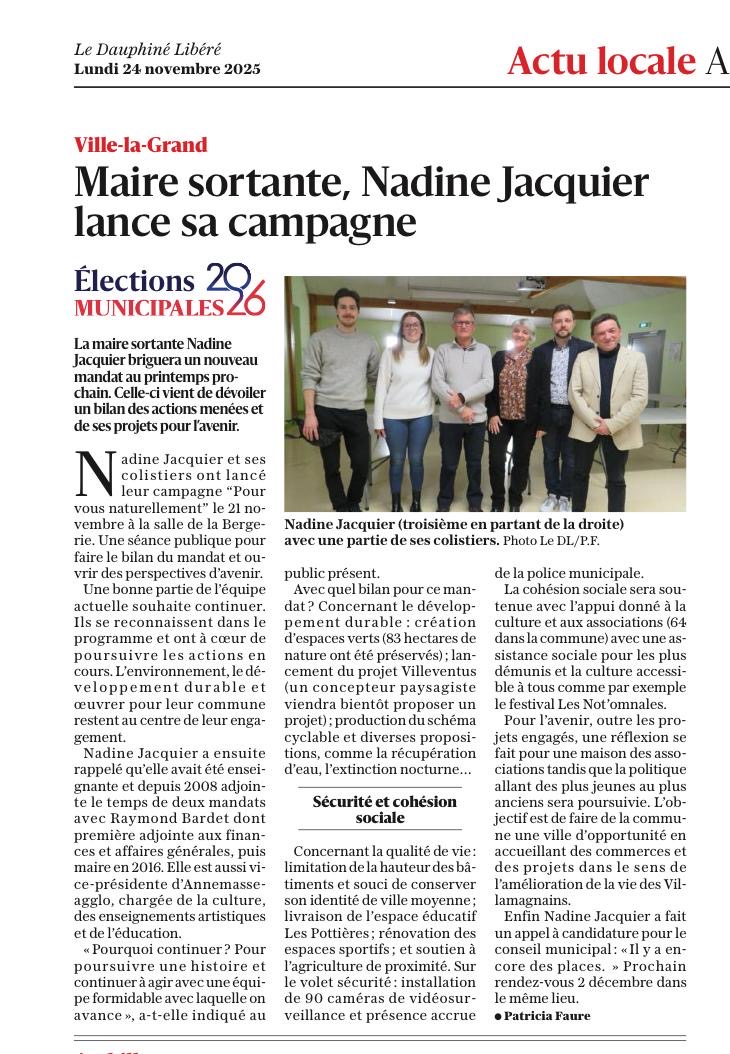 C’est pourquoi nous vous donnons rendez-vous très prochainement pour découvrir nos grandes orientations et continuer, ensemble, à écrire la suite de l’histoire de Ville-la-Grand.