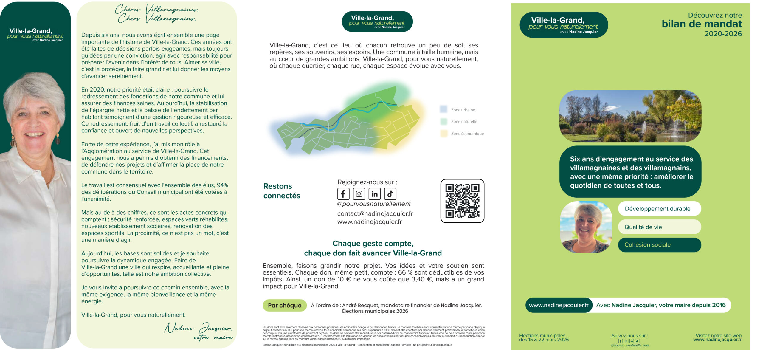 Depuis 2020, nous avons traversé ensemble des années marquées par de profonds changements : une crise sanitaire inédite, des défis environnementaux croissants, des attentes nouvelles en matière de proximité et de solidarité. Malgré ce contexte, notre équipe n’a jamais cessé d’agir pour Ville-la-Grand.