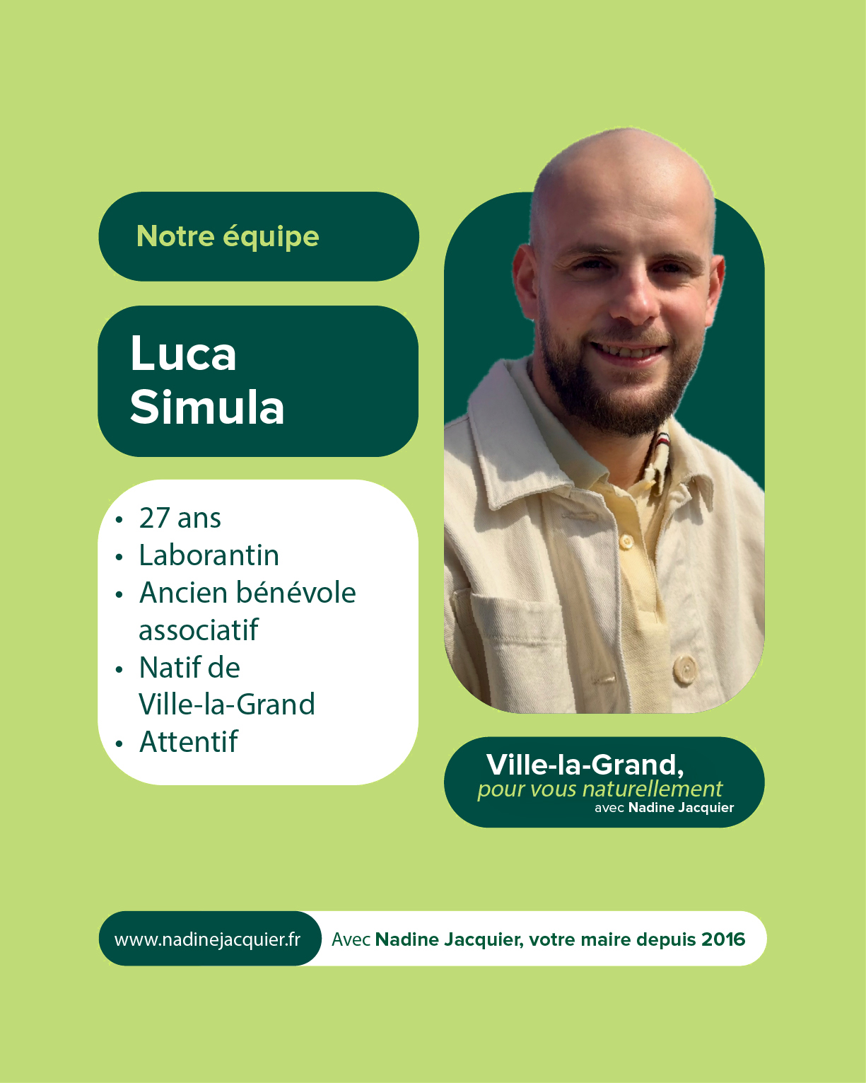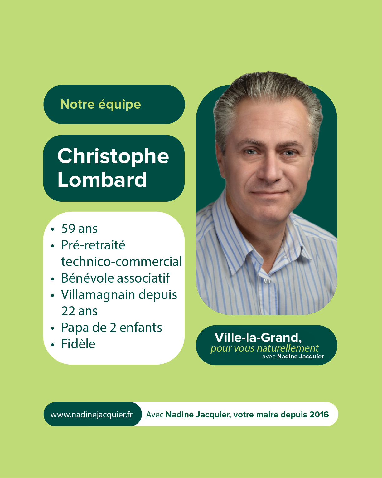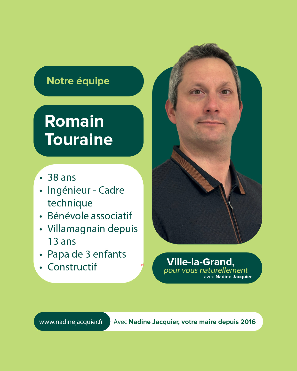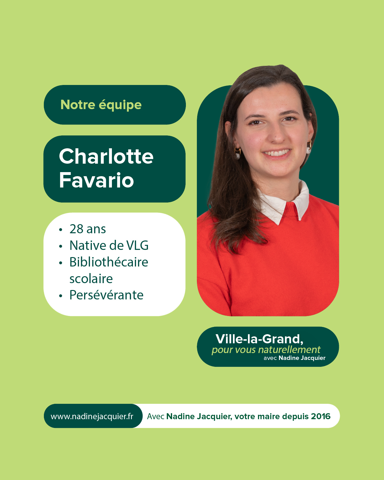Votre soutien et votre confiance nous sont précieux. À très bientôt pour la suite de cette aventure collective. Alors si vous voulez voir aboutir l’ensemble des projets initiés : votez pour la liste menée par Nadine Jacquier “Ville-la-Grand, Pour vous naturellement” le 15 mars prochain.